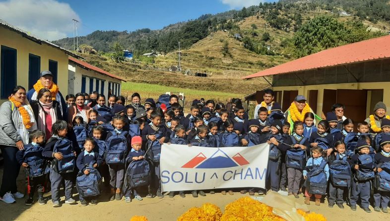 शेर्पा बालबालिका सहयोग सस्थाका अध्यक्ष ङिमा शेर्पाको विशेष पहलमा सोलु चाम नामक संस्थाले विद्यार्थीलाई झोला वितरण गरेको वडा सदस्य भलाकाजी कार्कीले जानकारी दिनुभयो ।