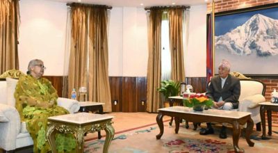 काठमाडौं, राष्ट्रपति रामचन्द्र पौडेल र प्रधानमन्त्री सुशीला कार्कीबीच भेटवार्ता भएको छ । शितल निवासमा राष्ट्रपति